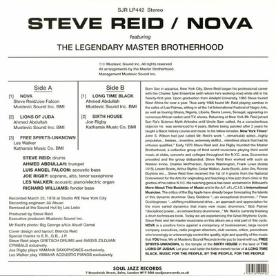 Way back in 1976, now legendary U.S jazz drummer Steve Reid and his band, The Legendary Master Brotherhood, headed into Studio WE in NYC to record what would become "Nova" - a near-legendary debut album that has since become a cult classic. Featuring a mix of punchy free jazz and free funk, the set is still regarded by many jazz-heads as Reid's defining work. Here it gets a fresh reissue on limited orange vinyl, with Soul Jazz Records doing their usual bang-up job on the mastering and packaging. There's much to admire throughout, from the fizzing dueling trumpet and sax solos of breezy opener "Nova", to the spiraling spiritual jazz intensity of "Free Spirits - Unknown" and the free-jazz epic "Sixth House".