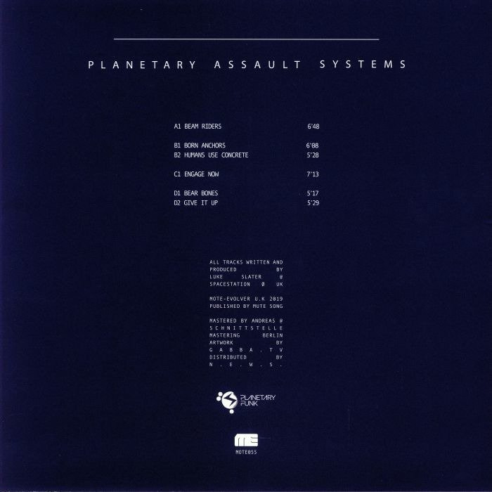 After a period of reissues, retrospectives and reflection, Luke Slater is once again ready to take on all comers with his full-throttle techno project Planetary Assault Systems. As the title suggests, "Straight Shooting" is not for the faint hearted, though fans of the producer's work under the long-held alias will absolutely love it. As with previous reelases, Slater pairs the far-sighted, sci-fi inspired futurism of Detroit with the bombastic, all-action loop techno flex of fellow British veterans Surgeon and Regis. Highlights include the alien techno slam of "Beam Riders", the relentless percussive pressure of "Humans Use Concrete", the dystopian darkness of "Engage Now" and the sweaty, glassy-eyed warehouse flex of EP standout "Give It Up".