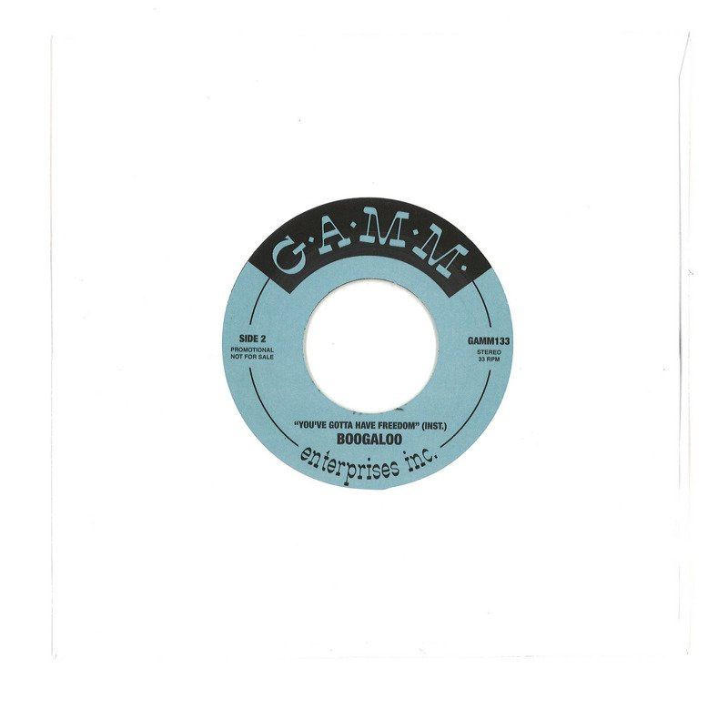 Astonishingly, Boogaloo's re-make of Pharoah Sanders classic "You've Gotta Have Freedom" is now 24 years old. It was originally included on the B-side of the jazz-loving Swedish hip-hop outfit's 1995 EP "Humongous Steps (Back Down To London)", but arguably became more widely known when it was reissued by G.A.M.M. on 12" in 2003. Here it appears on 7" for the first time, with the band's vocal version - a positive, life-affirming delight that brilliantly flits between sections faithful to Sanders' version and rapped section underpinned by live hip-hop breaks - being accompanied by an equally impressive instrumental take. If it's not already in your collection, this edition should be an essential purchase.