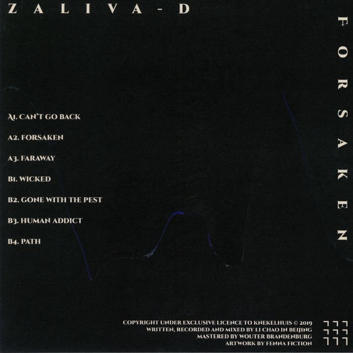 Welcome to the richly rhythmic and deeply esoteric world of Zaliva-D. Based in the Chinese capital of Beijing, they’ve been circling the country’s borders for more than a decade due to the extreme difficulty of streaming music there. Zaliva-D consists of musician Li Chao and Aisin-Gioro Yuanjin, who’s responsible for their stunning live visuals. We’re very proud to present Forsaken, their 4th album, but first ever vinyl release. Wrapped around a core of gut wrenchingly ferocious kicks and haunting vocals, these tracks possess a mantra-like quality and drown the listener into a world of Chinese and South East Asian textures. Forsaken, mastered by Wouter Brandenburg, is their most well-written, organic and esoteric record to date, showing a more fragile, sensitive side. Soon Zaliva-D will perform on European soil, accompanied by this Knekelhuis debut.