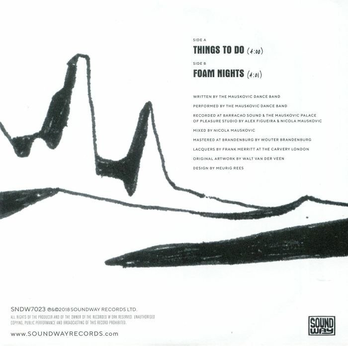 Following a successful UK debut tour, The Mauskovic Dance Band returns with a surprise 7' single 'Things To Do'. The A-side 'Things To Do' serves up another helping of space disco at breakneck tempo - peppered with frenetic synth riffs, congas and lofi vocals. On the flip, 'Foam Nights' is a soundtrack to a hazy cantina, permeated by disco toms and drum machines. Beautifully packaged in full artwork cover, and clear PVC slip wallet.