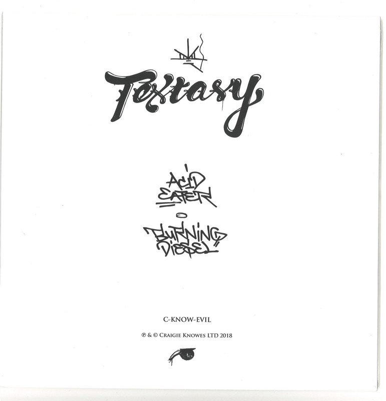 New record label by Craigie Knowes focussing on faster, harder and darker tracks. The first comes from a familiar affiliate of Craigie Knowes - TEXTASY. This record sees the Texan side-step away from his usual (if there is such a thing for Textasy) electro, hardcore or ‘terror tech’ sounds and lands firmly within the realms of techno. Interesting and club-destroying at the same time, just like everything else he’s released. Hand-drawn 10″ sleeve design by Rakem to boot.