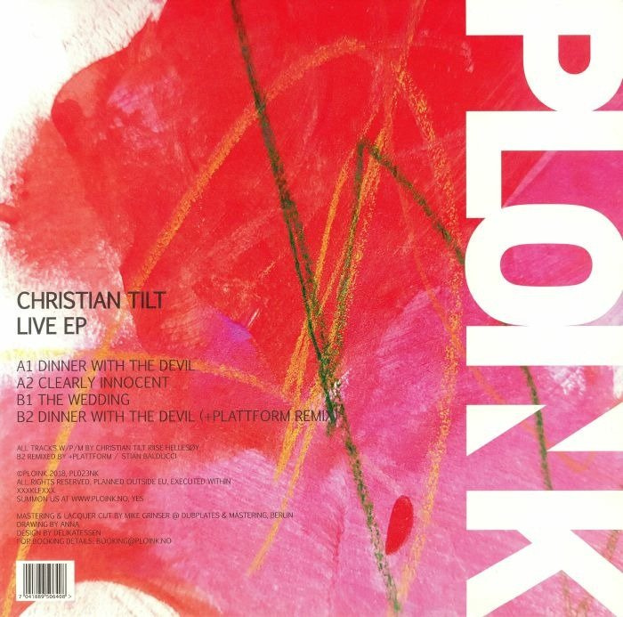 Echoing stabs and rattling drums introduce 'Dinner With The Devil' as ominous elements fade into the mix generating a brooding aesthetic. Heavy atmospherics and a skipping beat then make up 'Clearly Innocent' before the intricately produced 'The Wedding' combines a cacophony of percussion with sinister drones and twisted effects. Finally, +plattform, who was recently nominated for a Norwegian grammy ('Spellemannprisen') for his 'Twelve LP' on PLOINK, concludes the release with a meandering remix of 'Dinner With The Devil' that's exemplary of his esoteric approach to techno.