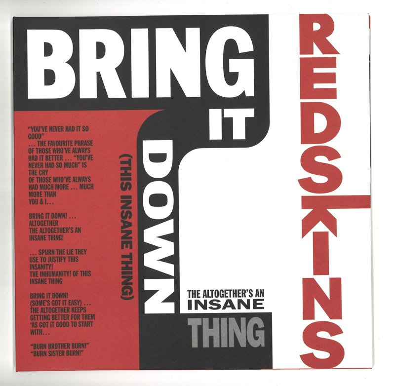 The first Redskins re-issue for many years, this is a 4-track celebration of their 1985 Top 40 hit, 'Bring It Down! (This Insane Thing!)'. Featuring their distinctive hybrid of rock and soul complete with their signature brass section and their unmistakeable 'call to arms' socialist sensibility.