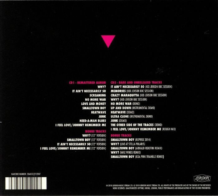 2CD in 3-panel digipack with 2 clear trays and 12-page stapled booklet. Packaging/Extra Content Remastered from original 1984 analogue tapes Expanded 2CD reissue in 3-panel digipack including remastered album plus 20 bonus tracks including demos, BBC sessions, new remixes and unheard material. Also features new sleeve notes from Jimmy Somerville, Mike Thorne and Paul Flynn.