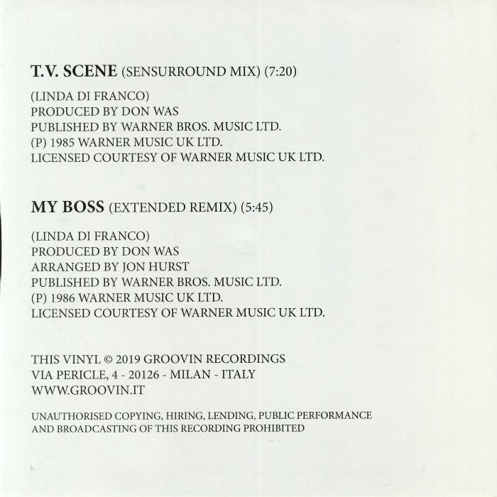 Linda Di Franco only released an album in 1986, "Rise Of The Heart" and it is still considered a Balearic classic. The main tunes are "T.V. Scene" and "My Boss" which extended versions are featured in this official repress remastered from the original tapes. Not to miss!