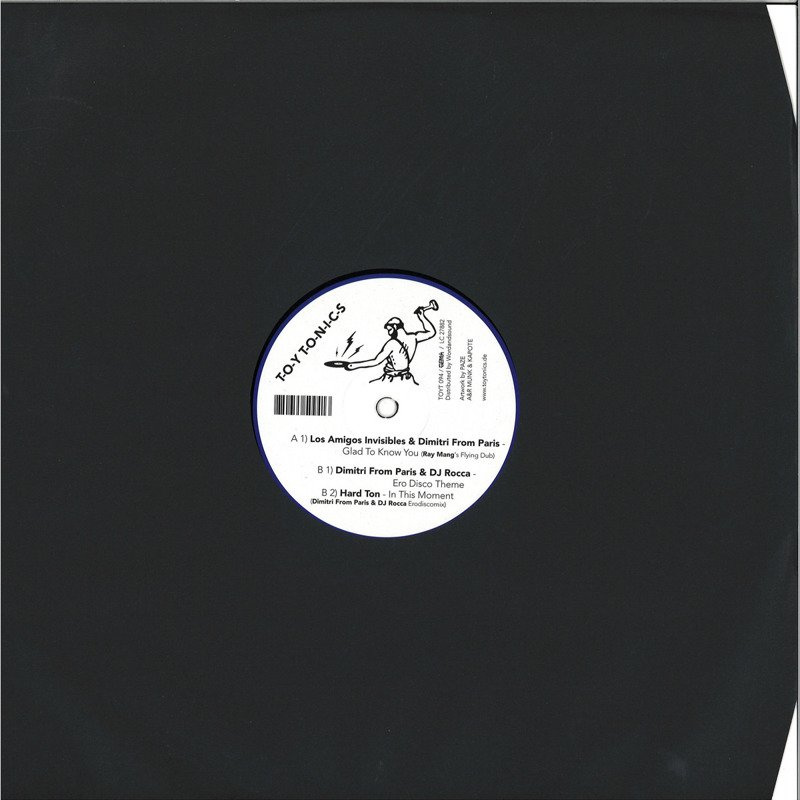 Dimitri from Paris & DJ Rocca on Toy Tonics! Some might wonder, other will understand. The reason: Toy Tonics records is made by the same guys who used to run the (currently sleeping) indie disco label GOMMA. And Dimitri & Rocca did a couple of EPs on Gomma some years ago. Now it's 2019 and some of their older works sound still/again so fresh that it made sense to release them again on Toy Tonics. That's why you get this package. Three jams perfectly for the summer: The ultra 1990ies house remix for Italian duo Hard Ton. Then their all time disco superjam Ero Disco Theme and the long time sold out and currently highly looked for Ray Mang remix of Dimitri's collabo with band Los Amigos Invisibles. That 'Glad to know you' version goes for a lot of $$$ on Discogs, so why not put it out again. Have fun with Dimitri & Rocca. Old school house and disco dream team.