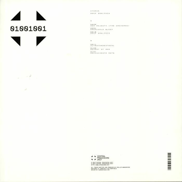Back in 2012, C.P. Smith's Central Processing Unit label launched via a fine EP from Texas-based producer Philip Washington AKA Cygnus. Having continued their relationship via an album and further EPs, it would be fair to say that the American is one of the Sheffield label's most significant acts. "Deep Analysis" is Washington's first release on CPU for four years and delivers a sextet of high-grade electro cuts. There's much to admire throughout, from the bustling computer beats and deep space chords of "Decent Of Man" and the angry vocoder vocals of bona-fide club-rocker "Sheffield Bleep", to the Drexciya style intensity of the title track and bubbly brilliance of EP opener "Her Majesty (The Universe)".