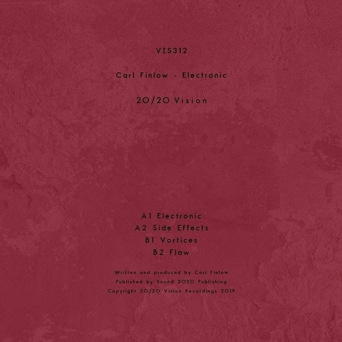 Carl Finlow is well known as one of the true pioneers of second wave electro producing work for Warp, Klang and NovaMute along the way. What's even more remarkable is the huge impact he's had since returning with new music last year with a flurry of releases for Cultivated Electronics, Central Processing Unit, Lone Romantic and Craigie Knowes. It all started with his early productions on 20/20 Vision and it's a testament to true talent that Finlow enters 2019 with such explosive, forward thinking music. The title track 'Electronic' delivers trademark Finlow vocoder work over hard hitting electro beats and immaculate synths. 'Side Effects' is a no holes barred journey into the dark side of EBM while 'Vortices' creates a trip for the dance floor. The EP is finished with 'Flaw' complete with beats that would make the late great Prince proud while firmly rooted with layers of electronic trickery.