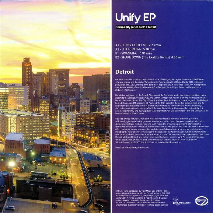 SolarOneMusic introduces their new "Techno City Series". Focused on citys around the world, which have given their contribution to the electronic music scene, the series will start with the leading Motor City Detroit. The first release will be from the mysterious Detroit underground collective Scan 7. After releases for Underground Resistance, Tresor, Derrick May's Transmat and their own Label Cratesavers the collective now debuts on SolarOneMusic. The release comes with 3 funky dance floor classics and one hypnotic killer remix by The Exaltics.