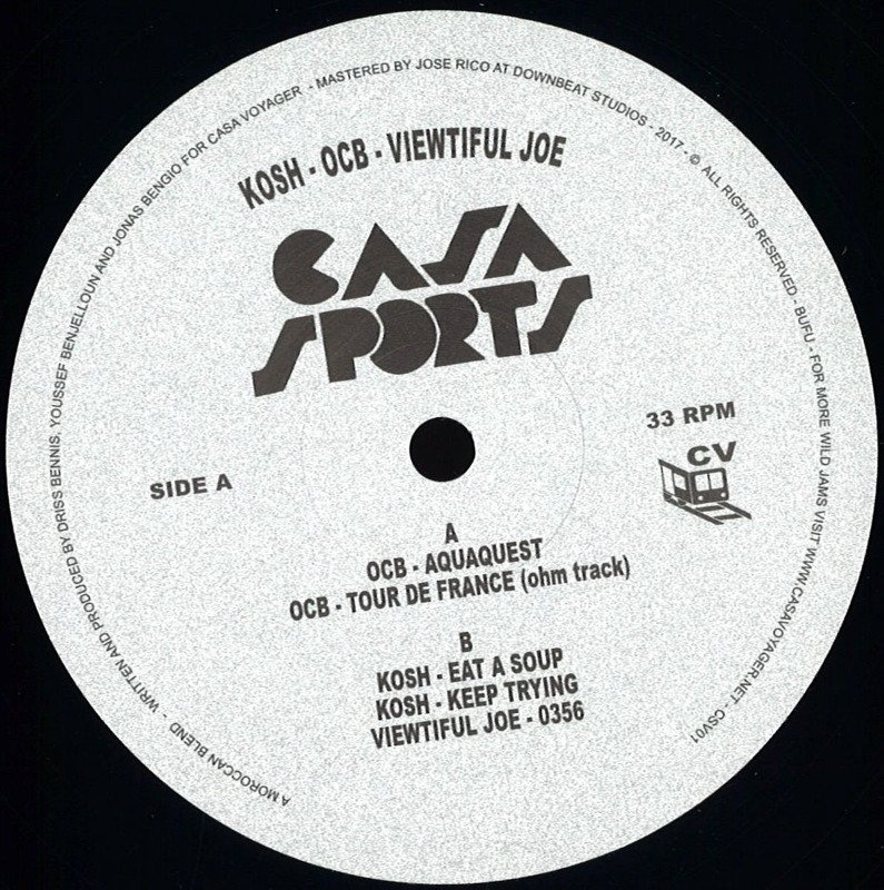 Debut release of Casa Voyager, first Moroccan label exploring hidden cultural spheres in Casablanca. Five liquid electro Detroit tracks produced, mixed and arranged by Driss Bennis aka OCB (A1, A2) Youssef Benjelloun aka Kosh (B1, B2) and Jonas Bengio aka Viewtiful Joe (B3). Mastered by Jose Rico at Downbeat studios.