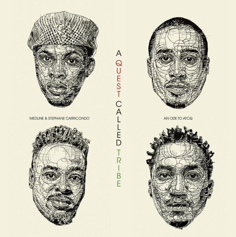 A Quest Called Tribe begins with a series of portraits drawn by Stéphane Carricondo in 2017 dedicated to Hip-Hop legends. As close partner in art Medline proposed to create a soundtrack for them, and first interpreting ATCQ's classics with elements of the past, present and future. The best way to materialize this multidimensional tribute was obviously a vinyl. And it's the one we unveil today. On the visual side, ATCQ's portraits are composing the front cover and, assembled into a great scene, are printed on a colorful A2 poster. Stéphane Carricondo's natural lines are highlighting each member's soul map. The alchemy of the dark ink on emptiness gives to them an impressive sparkle of life. On the musical side, the classic themes are transformed into a polymorphic fusion, were jazz, funk and soul from the original sample sources converse with Tribe's characteristic beats. Medline added a hint of his magic, unique rhythms, improvisations, arrangements, original orchestration and inspired melodies. The album is an ode to the band that marked both artist's life and mind. A cultural print and school of sound that designed Hip-Hop foundations. With a blooming expression Medline and Stéphane Carricondo are going to the roots of ATCQ in a quest for the tribe.