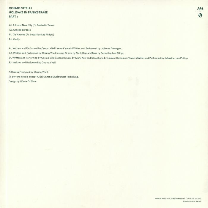 Cosmo Vitelli hasn’t slept since 1973. Instead, he’s replaced slumber with the tireless exploration of electronic music, sharing his finds as an accomplished DJ and label manager as well as an esteemed producer, with heaps of records, remixes and edits under his belt. With his upcoming two-part LP on Malka Tuti, Cosmo brings forward his more diverse and somehow mature musical side, combining elements of post-punk, krautrock, electronica and pop on this first of 2 four-track records. The songs on the LP transcend style and genre. They manage to hold and playfully sustain an idea that echoes throughout them all - a musical “saying” as well as a personal life experience, and they reflect Cosmo’s prolific studio work of the past 2 years since he moved to Berlin. On the opening song A Brand New City he collaborates with longtime friend Julienne Dessagne (aka Fantastic Twins). Dessagne’s vocals cut through the quirky and addictive percussion groove and synth sequence, leading to a a strong emotional melancholic melodic catharsis. On the following two songs Groupe Surdose & Die Alraune we find Cosmo collaborating with Sebastian Lee Philipp (of Die Wilde Jagd fame) to show his more post-rock/krautrock side. Groupe Surdose is an instant classic slow burning dance floor Krautrock tune while in Die Alruane we find poetic German lyrics sung by Lee-Philipp on top of organic grooves, guitars and an epic Saxophone line that together create a distinctive highlight for the record. The closing track Kuldip is the curve ball of them all, sealing the first part of his album with a Mediterranean mid tempo dance tune for the selectors and the middle-eastern inspired electro aficionados.
