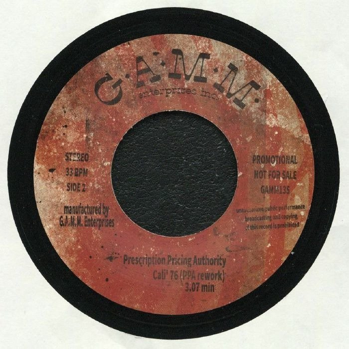 Almost a year to the day since their last essential re-edit outing, Prescription Pricing Authority returns to G.A.M.M. with two more floor-friendly slabs of contemporary scalpel science. A-side "Pick 'Em Up" is a rolling, filter-sporting revision of a down-low disco-funk classic rich in bouncy pianos, soaring female chorus vocals, metronomic drums and punchy horns. It sounds like a peak-time monster in the making, which is never a bad thing. They up the tempo on flipside edit "Cali '76", a tidy, DJ-friendly rearrangement of a horn-sporting chunk of polyrhythmic jazz-funk that boasts some suitably spacey synth solos and horn lines sharper than your average razor.