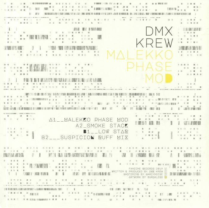 Idiosyncratic producer DMX Krew offers up four playful acid-tinged tracks for the Malekko Phase Mod EP, released through eclectic Spanish label/club night/promotion agency, Fanzine Records. The vinyl-only release is the first output of 2019 for the Coruna based imprint currently celebrating their 10th anniversary and is the follow up to C44's bizarro-techno Res Publica Populi Romani EP, and Dijuma's dubby and atmospheric Cold Tracks EP.