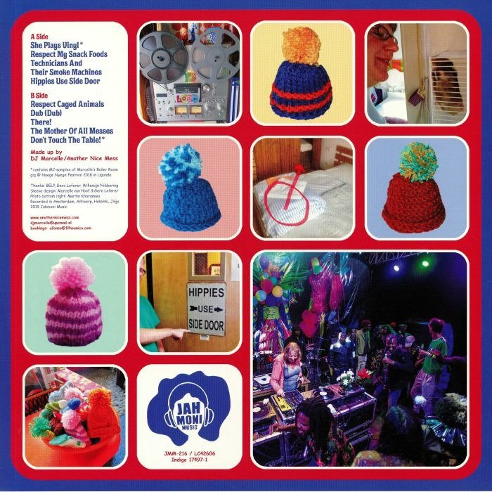 The sleeve - as always with Marcelle - is very colourful and features photos of knitted egg cosies and images related to individual songs. It's a bit of a puzzle to find out which photo connects to which song, an enjoyable challenge, just like the LP itself.