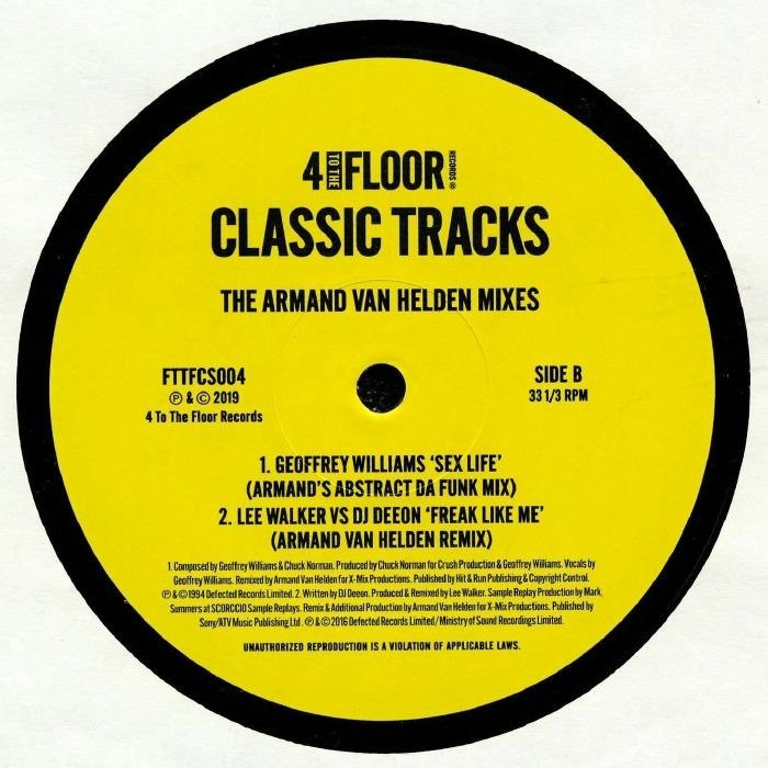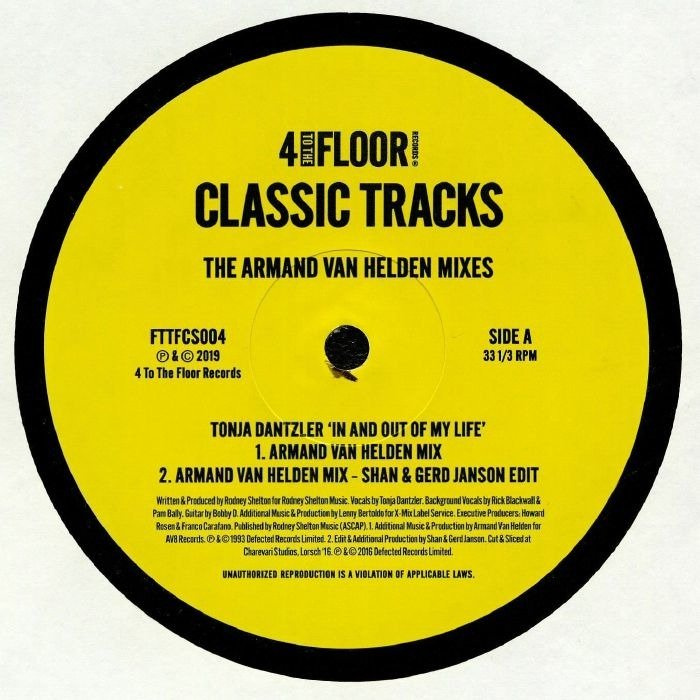 4 To The Floor is committed to delivering seminal house music to wax, making sought after heritage tracks readily available on vinyl for crate diggers to add to their collections. The third edition of the series pays homage to one of the most heralded names in house music - Armand Van Helden. While Armand’s productions like ‘U Don’t Know Me’ and ‘Bonkers’ have soared to #1, he has remained a true legend of the underground. One of the most illustrious remixers in the game, this 12” package celebrates this part of Armand’s skillset. Kicking off the A-side is his remix of the 1993 club anthem by Tonja Dantzler ‘In And Out Of My Life’, followed by Shan & Gerd Janson’s edit which amplifies the Armand’s remix even further. On the flip is a classic bouncing house and garage sound from 1997 on Armand’s remix of Geoffrey Williams’ ‘Sex Life’, followed by the more recent Armand remix of Lee Walker vs. DJ Deeon’s ‘Freak Like Me’ – an explosive club track that was championed by everyone from Marco Carola to Annie Mac.