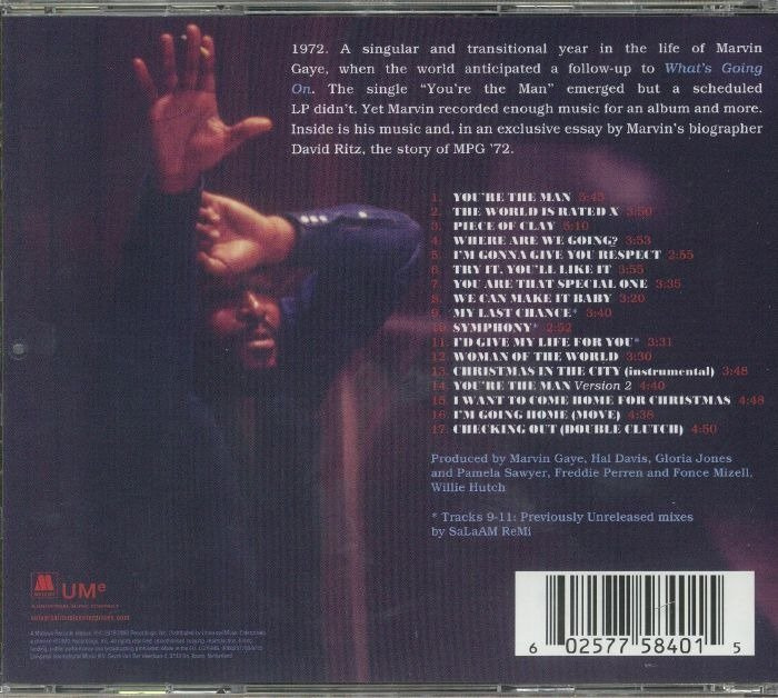In 1972, Marvin Gaye set to work recording what was scheduled to become the follow-up to his greatest single studio album, the previous year's "What's Going On". In the end, only one single from that mooted set ever appeared - "You're The Man", a weary assessment of that year's U.S Presidential Election - and Gaye's bitter arguments with Motown continued. This intriguing album tries to set the record straight, gathering together work completed for the shelved album with newly mixed songs based around previously unfinished works. There's much to admire throughout, with the material flitting between the kind of lusciously orchestrated, conscious songs featured on Gaye's previous set and more commercial-sounding Motown pop (much of which was produced by Willie Hutch).