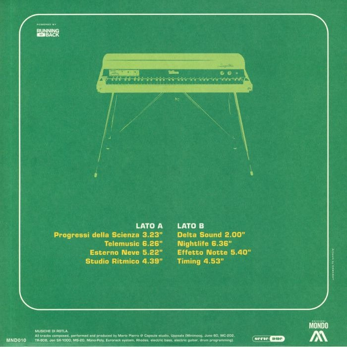 Mario Pierro aka Raiders of the Lost ARP (ROTLA) returns to Edizioni Mondo. “Trasmissioni” is his debut LP under this moniker, using fictitious TV show themes as an excuse to create his musically most eclectic record so far. Departing slightly from the Balearic and prog rock influences of the previous “Laguna” EP, in “Trasmissioni” ROTLA covers many territories: opening with the science-celebrating arpeggios of “Progressi della Scienza” (Italian for “advances in science”), to the funky, off-beat grooves of “Telemusic”, then taking a step into a disco during “Nightlife”, before programming his rocket towards eerie nordic drum machines and Hammond organs in “Esterno Neve” and “Effetto Notte”, and many planets more. A welcome edition to the ever expanding Edition Mondo universe and a record you can’t grow tired of. Eco-Friendly green artwork that shows how tiny we all are. Good listening!