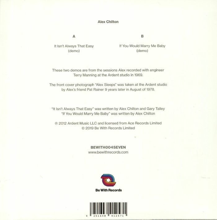 We adore Big Star and Alex Chilton more than words can express. Being able to present two of Alex’s staggeringly beautiful demos on vinyl for the first time (on a cute picture sleeve 7", no less) is an absolute honour for us at Be With.