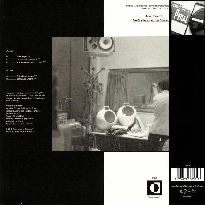 Transversales Disques is very glad to announce the release of Nuits Blanches au Studio 116, unreleased rarities from Ariel Kalma’s personal archives recorded in the legendary GRM’s Studio 116 during the 70’s. Born and raised in Paris, Ariel Kalma started playing the recorder and saxophone as a youth. After successive studies of Computer Science, Music and Art in Paris he performed in various concerts from middle-age music to free jazz duo. Ariel performed and recorded with several bands (J. Higelin, R. Pinhas, NYL, G. Scornic, Baden Powell…). After learning circular breathing on soprano sax, Ariel could include those endless notes into his own long-delay-effect system, dual Revox set-up and two tape machines “chained” together to form a long delay system. In France during the mid-1970s, Kalma was staffed as a recording assistant at legendary Groupe de Recherches Musicales (INA GRM) studios, where Ariel recorded some of his compositions in the Studio 116; the same music “concrete” laboratory that spawned masterpieces by members Luc Ferrari, Bernard Parmegiani…