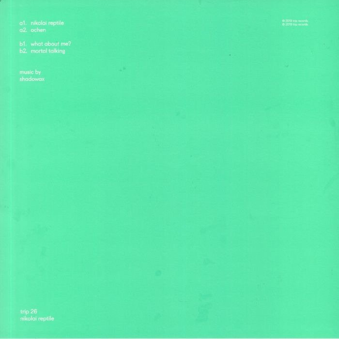 It's hard to think of a DJ with the global profile of Nina Kraviz who runs a label as underground and innovative as trip. The latest comes from Shadowax, who has previously contributed to the label's compilations but now makes her full label debut. Unlike much of the frantic and frenetic material trip has dealt with in the past, this EP slows the tempos and explores more moody and hypnotic techno. Opener "Nikolai Reptile" is a super slow motion and dub rhythm with searching synth lines gently riding up and down the scale, while "Ochen" recalls the icy minimal perfection of Daniel Bell. "What About Me" has spoken word mutterings and paranoid, pressurised kicks that hurry you along and lastly "Mortal Talking" is a flurry of hyper-speed drums and synth loops to fully flip you out.