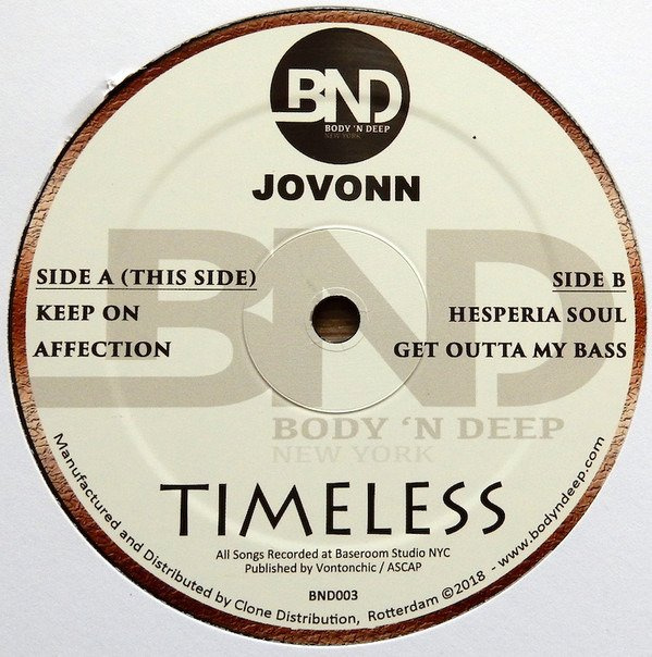 Jovonn returns to his Body N’Deep label to release the album ‘Timeless’, his first since ‘Blaque House’ released on Code Red back in 2009. With releases on such labels as Clone, Apollonia and Dogmatik the last few years, Jovonn set up his Body N’Deep label in 2017 to release tracks from himself and other like-minded producers. The album focusses on the deeper side of house and Jovonn’s trademark New Jersey house sound, with contributions by Patrick Mangan (violin) on ‘Hesperia Soul’ and Cassioware on ‘Turnin Me Out’.