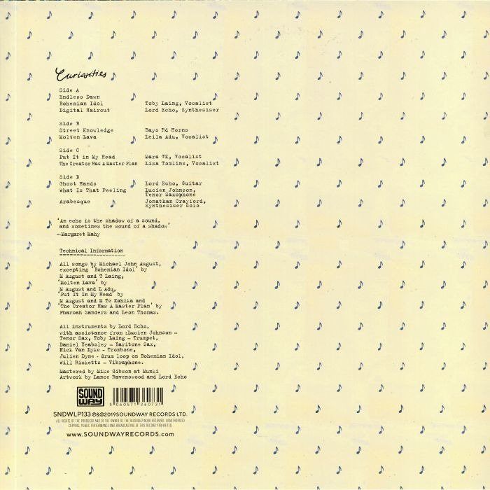 Soundway Records completes the Lord Echo album collection, finally reissuing the second album in the trilogy from the in-demand New Zealand multi-instrumentalist and producer. Originally released in 2013, ‘Curiosities’ is now available as a DJ friendly double LP for the first time. The entirely self-produced album blends jazz with disco-tinged neo-soul, reggae and classic afro-beat in effortless manner - and joins the dots between the more downtempo first album ‘Melodies’ and the disco, electronic, club-ready of his third album ‘Harmonies’. The album also features a dub-funk cover of Pharoah Sanders’ “The Creator Has A Master Plan”, with vocals from Lisa Tomlins.