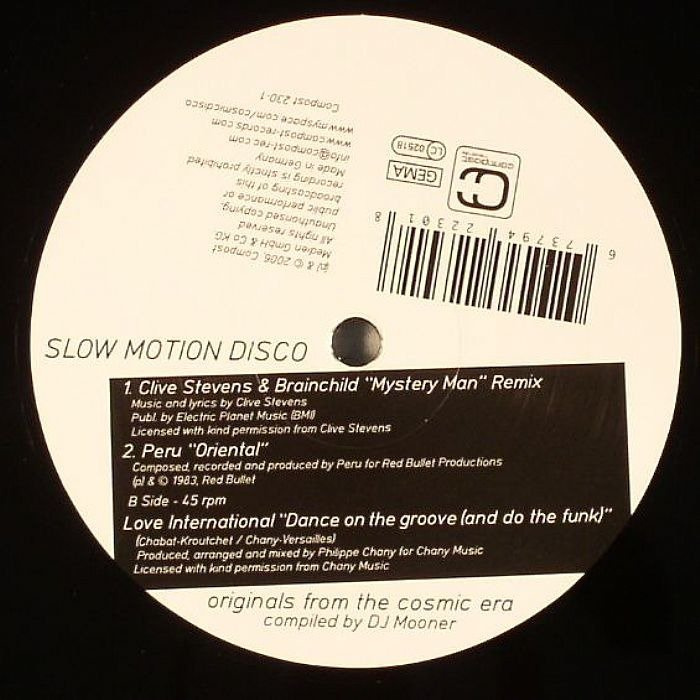 Fantastic EP with three rare originals from Italy's Cosmic Disco era (early 80s), selected by DJ Mooner. Incl. tracks by Clive Stevens & Brainchild, Peru and Love International. For fans of Daniele Baldelli & DJ Harvey. File under Balearic/Cosmic/Futureboogie/Spacedisco...DJ Mooner: "It's time for a new style in dance music I think. Both minimal house and AC/DC riffs over electro clash beats make me leave parties. Since two years I slip back in time and get new inspiration from Italy's 1970s and 1980s dance music seperated from Italodisco: Afro Cosmic sound, also known as "balearic". Here is a preview EP of the forthcoming CD/2x12" of original tunes and rare tracks."Clive Stevens & Brainchild "Mystery Man" Remix - Highly sought after 12" by "new spirit in jazz" legend Clive Stevens, rarely seen on Ebay...Beautiful female vocals over an outstanding Disco track with unusual percussion breaks. Peru "Oriental" · A production by the dutch synthesizergroup from 1983, inspired by playful japanese productions such as Yellow Magic. Another track from the album went No.1 in Austria. Later Rob Papen became sound designer for EMU. Love International "Dance on the groove(and do the funk)" · This was a superhit in 1980 at the original Disco Cosmic in Italy. Amazing, Bohannon-influenced, heavy funk danceproduction. Special 6 minutes dance version. The Story of the italian Cosmic sound in 2 minutes: Italy, 1976 In a luxurious discotheque on the Italian Adriatic coast. Every weekend, two American DJs called Bob and Tom play records that are big in the clubs of their hometown New York City. Bob and Tom are the resident DJs at the "Baia degli Angeli", a huge club with various floors, fountains, swimming pools and lots of glitz and jetset people. Two years later, the Baia closed due to a drug raid, and Daniele Baldelli, inspired by the "Baia Sound" shortly after starts DJing in the new club "Cosmic", situated at the Lago di Garda in Northern Italy. Baldelli does not only play funk, soul and disco records. His style is unique: songs are mixed perfectly in an super slow tempo of 80-105 BPM. The music is like an LSD trip: African choirs on 45 RPM, percussion solos, bolero with delay effects, 12" singles on 33 instead of 45. A whole wave of DJs and clubs has been by Daniele Baldelli. And soon the whole of Northern Italy calls this sound "Cosmic Music". Nowadays, producers such as Lindstrom, Prins Thomas or labels like Gomma and Eskimo have been deeply inspired and try to create dance tracks that have a similar atmosphere.