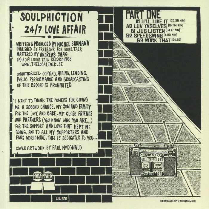This is the third time Soulphiction has featured on Local Talk including his recent single "Beehive". Other labels to have featured Soulphiction tracks and remixes include Lumberjacks in Hell, Rebirth, Pampa and Philpot Records.