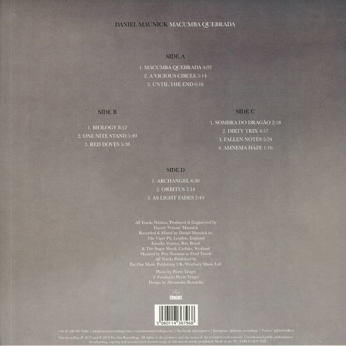 Earlier in the year, Far Out welcomed Daniel Maunick - son of Incognito's Jean-Paul Maunick - to the label. Since then he's released two 12" singles, both of which offered dancefloor-friendly fusions of house, broken beat, jazz-funk and Brazilian sounds. He expands on this theme on "Macumba Quebrada", an impressive debut album which highlights various mix-up bass music and samba (the weighty title track), deep house and jazz-funk ("Until The End", the warm and synth-laden "One Nite Stand"), jazz and drum & bass ("Red Doves"), samba and dream house ("Fallen Notes"), jazz and hip-hop ("Amnesia Haze"), and ambient and space jazz ("As Light Fades"). It's a mixed-up stylistic blend, for sure, but one that hangs together admirably despite the producer's musical dexterity.