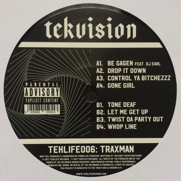 A leading figure and respected elder in the Teklife family, Traxman has waited patientlywhile releases from young upstarts like Taso and Dj Earl have been enjoyed by footwork lovers all over the world. Now the time has come for Traxman to take centre stage, presenting a collection of new material that demonstrates his mastery of the footwork sound. Tekvision arrives hot on the heels of Teklife 005: Greenlight by DJ Manny, bringing an interesting contrast of production methods and styles. A prodigious crate digger, Traxman has provided the sample sources for many of Footwork's classic tracks over the years. So while DJ Manny recorded the majority of the vocals on Greenlight himself, Traxman uses his expert sample flipping techniques to add the human element to his productions. Traxman is a mainstay of the Chicago underground, with a discography stretching back to the golden era of Dance Mania Records in the 1990s. Ghetto House was an important precursor to Footwork, and Traxman was a key figure during this transition.