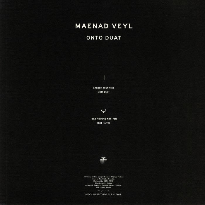 Bedouin Records enlist Thomas Feriero for some new music from his current industrial period. The former tech house man doesn't shun his roots altogether, laying down functional grooves but haunted by darker and noisier textures and tones. "Onto Duat" is clunking and intense, "Take Nothing With You" is lit up by serrated synths and oversized hi hats tethered to monstrous break beats, while "Change Your Mind" is a sludgy, paranoid cut for marching crowds. "Riot Patrol" is the best of the lot, with slow motion heaviness and a real sense of dystopian atmospherics locking you to the floor.