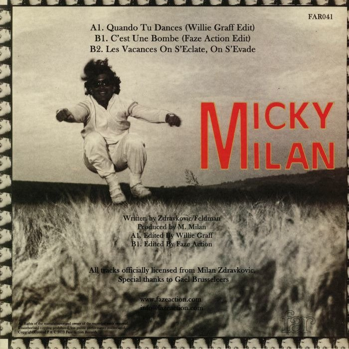 "Quando Tu Dances" was a hit for Micky Milan back in 1982 when it came out on Salsoul, and it has that seminal label's brand of disco funk spilling out of every bar. Now Faze Action have drafted a strong serving of remixers to bring a few deft touches to some of Milan's biggest hits, leading in with Willie Graff and his tasteful edit of the title track that lets the original vibe shine through in all its sunny finery. Faze Action themselves take on "C'est Une Bombe" - another slick '80s jam with plenty of boogie licks to complement the warmth of the guitar and Latin percussion. Finally we get an untouched original, the more spaced out cosmic pop jam "Les Vacances On S'eclete, On S'evade".