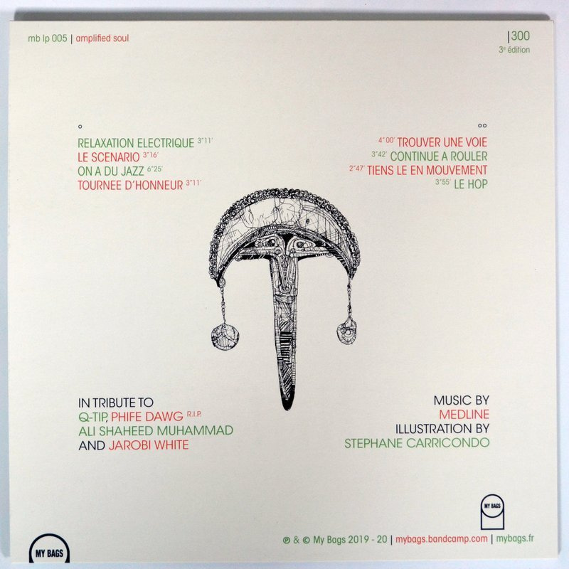 A Quest Called Tribe begins with a series of portraits drawn by Stéphane Carricondo in 2017 dedicated to Hip-Hop legends. As close partner in art Medline proposed to create a soundtrack for them, and first interpreting ATCQ's classics with elements of the past, present and future. The best way to materialize this multidimensional tribute was obviously a vinyl. And it's the one we unveil today. On the visual side, ATCQ's portraits are composing the front cover and, assembled into a great scene, are printed on a colorful A2 poster. Stéphane Carricondo's natural lines are highlighting each member's soul map. The alchemy of the dark ink on emptiness gives to them an impressive sparkle of life. On the musical side, the classic themes are transformed into a polymorphic fusion, were jazz, funk and soul from the original sample sources converse with Tribe's characteristic beats. Medline added a hint of his magic, unique rhythms, improvisations, arrangements, original orchestration and inspired melodies. The album is an ode to the band that marked both artist's life and mind. A cultural print and school of sound that designed Hip-Hop foundations. With a blooming expression Medline and Stéphane Carricondo are going to the roots of ATCQ in a quest for the tribe.