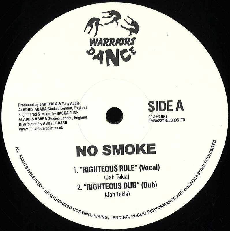 No Smoke was one of the main and best known outfits on this cult label. Their mammoth worldwide, cult club smash 'Koro Koro' is still in DJ bags across the galaxy today! 'Righteous Rule' is another tuffy from this crew, some heavyweight bassline madness for the dance.