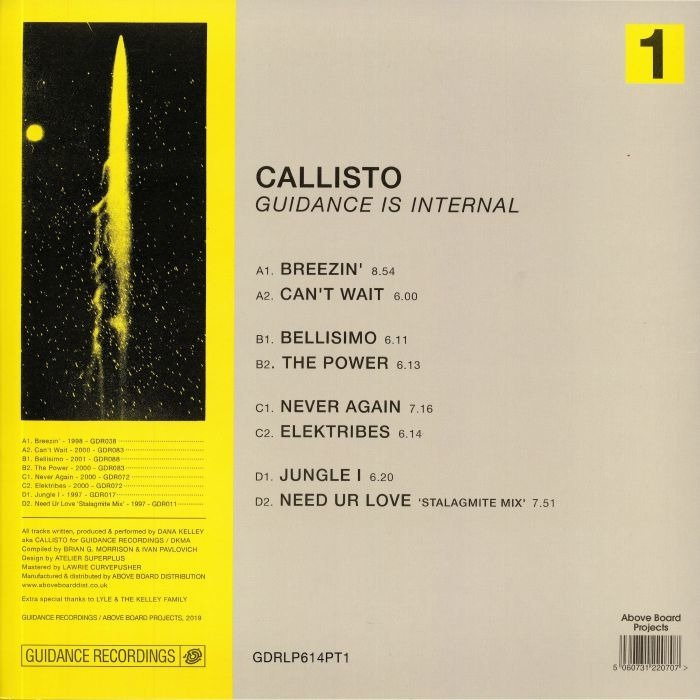 During his lifetime, Boston-based producer Callisto (real name Dana Kelley) was a prolific producer of deep house. He was particularly active in the late 90s and early 2000s, when he released a wealth of material on Guidance Recordings. "Guidance Is Internal: Part 1" gathers together some of his finest moments for the legendary imprint, sashaying between the bass-heavy, ultra-deep hypnotism of "Breezin'", the slick, tech-tinged warmth of "The Power", the US garage-influenced late night skip of "Never Again", the dub/spaced out drum and bass bliss of "Junkle" and the effortlessly soulful, New Jersey style headiness of "Need Ur Love".