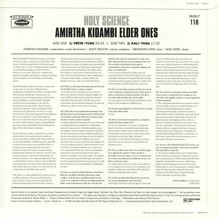 Arguably slightly overlooked on its 2016 digital download release, the debut album from New York improvisers Amirtha Kidambi and the Elder Ones is undoubtedly one of the most inspired debuts of recent years. It's great to see Jazzman pick it up for a vinyl release, because its unique combination of influences - Indian and South Asian music, spiritual jazz, avant-jazz, modal jazz and freestyle improvisation - makes it one of the most remarkable jazz releases of recent years. There's something particularly arresting about epic A-side "Treta-Yuga", where squally, high-octane horn solos ride a metronomic, seemingly never-ending bass loop and wild drums, though it's the spaced out flipside composition - all droning Indian tones, echo-laden vocals and off-kilter drums - that makes the greater impression.