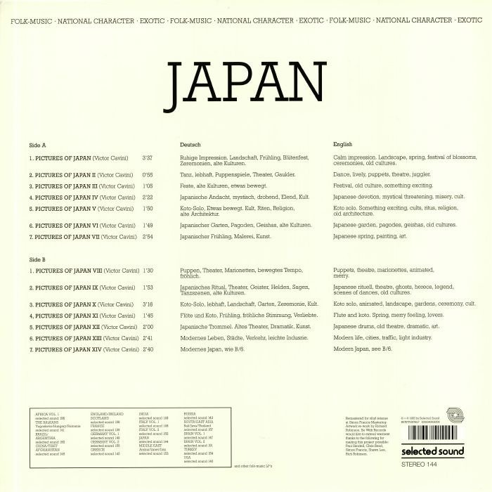 Victor Cavini was the library music pseudonym of prolific German composer and musician Gerhard Trede. He was known for exploring instruments and styles from around the world (he played over 50 different instruments himself) and Japan is