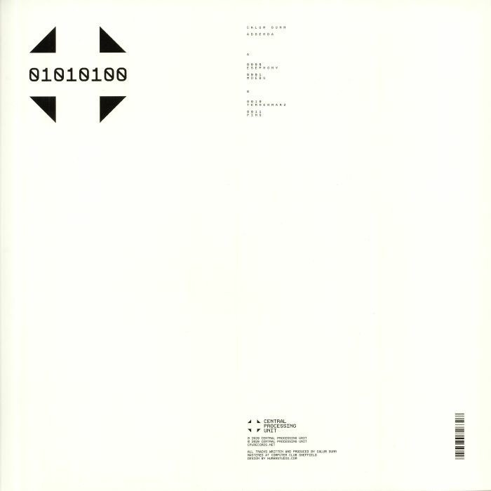 Gunn increases the tempo in Addenda's second half. 'Ternenmarz' introduces itself with more blarts of bass, but whereas these were steady on 'Esephony' they now jump around unexpectedly. Gunn holds the erratic kicks in place with twittering hats and snares - indeed, when you factor in its gnarly synth lines, 'Ternenmarz' steers closer than any other cut here to the high-grade electro drops that CPU has made its name with. Closer 'Pins' supercharges the snap of 'Esephony' to 145 bpm before Gunn softens up the track with reverb-drenched synths that nod to the sombre post-grime of Mr. Mitch's Gobstopper Records.