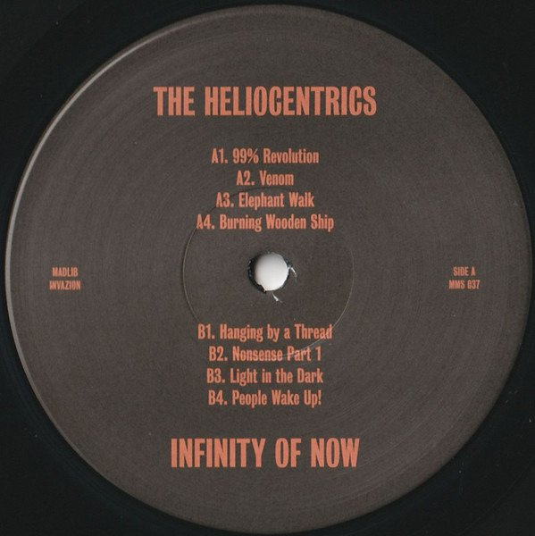 The UK’s cosmic, psychedelic-funk ensemble issue their first album on maverick producer Madlib’s label, Madlib Invazion. The Heliocentrics’ albums are all confounding pieces of work. Drawing equally from the funk universe of James Brown, the disorienting asymmetry of Sun Ra, the cinematic scope of Ennio Morricone, the sublime fusion of David Axelrod, Pierre Henry’s turned-on musique concrète, and Can’s beat-heavy Krautrock, they have – regardless of the label on which they’ve released their music - pointed the way towards a brand new kind of psychedelia, one that could only come from a band of accomplished musicians who were also obsessive music fans. Drummer Malcolm Catto and bassist Jake Ferguson are the Heliocentrics’ masterminds and producers, and they are obsessive weirdos in today’s musical climate, searching, progressive humans who are often out-of-time with current trends. They have been playing together for nearly two decades and their collective drive is to find an individual voice. The Heliocentrics search for it in an alternate galaxy where the orbits of funk, jazz, psychedelic, electronic, avant-garde and “ethnic” music all revolve around “The One.” With Madilb’s label Madlib Invazion for Infinity of Now, the Heliocentrics have returned to develop their epic vision of psychedelic funk, while exploring the possibilities created by their myriad influences, Latin, African, and more.