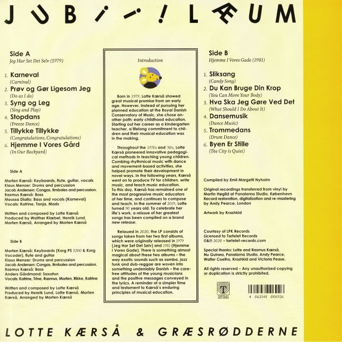The re-issued LP entitled Jubiiilæum (Anniversary) consists of songs taken from Lotte Kærså two first albums "Jeg Har Set Det Selv" (I've Seen It Myself) from 1979 and "Hjemme I Vores Gade" (On Our Street) from 1981 - both of which have long been sought after items among diggers and vinyl collectors.