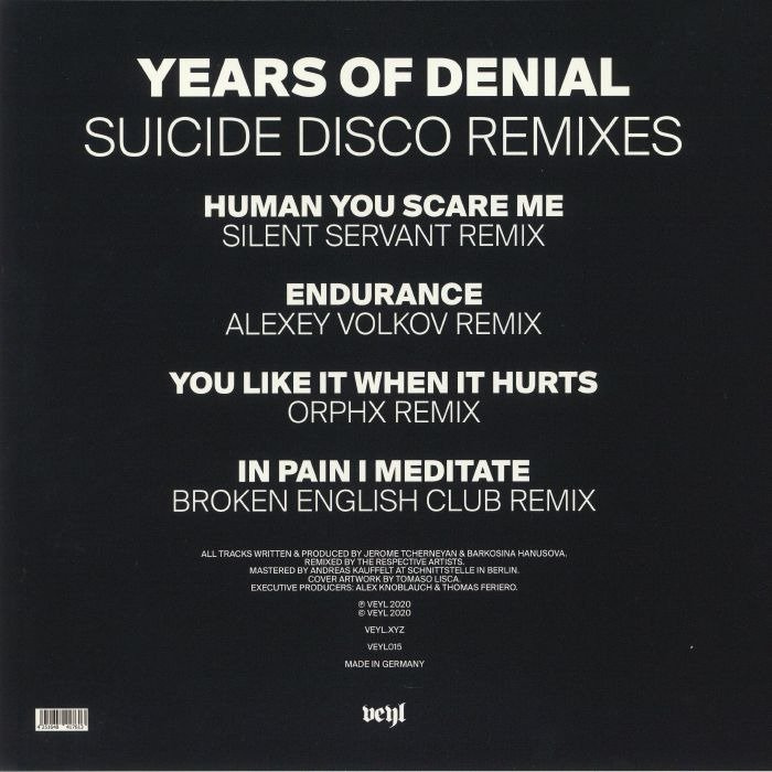 Years of Denial and Veyl enlist Silent Servant, Broken English Club, Orphx and Alexey Volkov to remix their 2019 album ‘Suicide Disco.’ Heart attack music at its finest.
