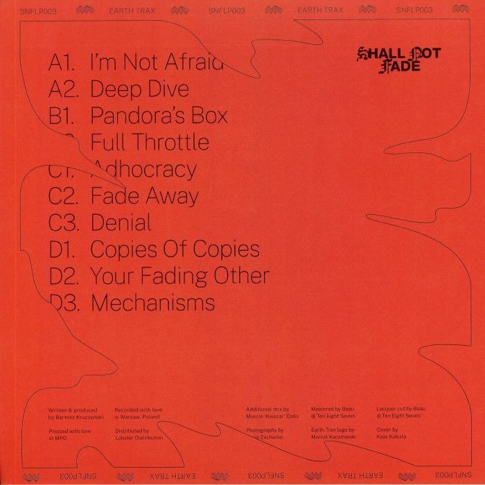 LP1 takes influence from cold wave, applying gloomy chords onto House and Breakbeat, whilst including textures that might draw reference to early IDM. Earth Trax blends dreamy vocals, pads and melodies with striking rhythms, squawking synthesizers and strong bass lines throughout. The LP was recorded as an extension of some of the artists moodier singles on Shall Not Fade sister imprint, Lost Palms. It explores a more experimental approach towards House music, whilst drawing influence from some of his more downtempo style releases as Bartosz Kruczyński. LP1 features the stunning photography of Kasia Zacharko & graphic design of Kaja Kukuła.