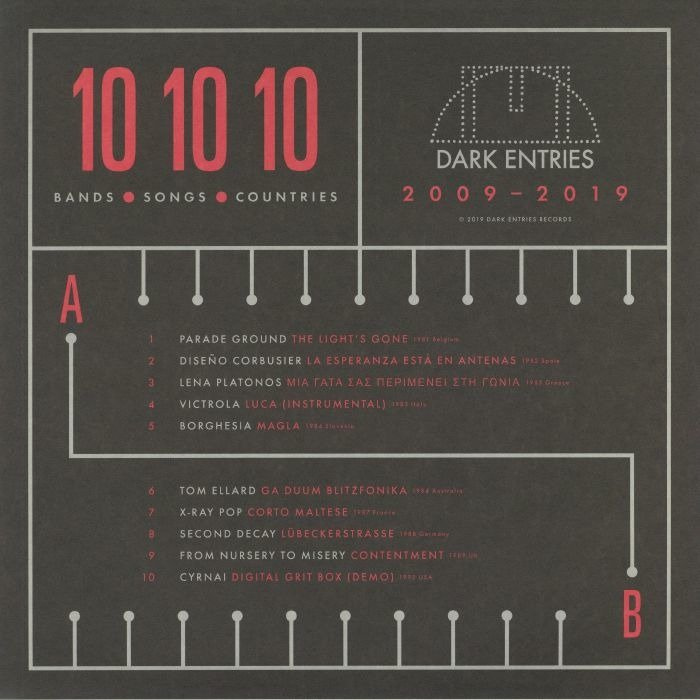 In 10 years Dark Entries has become one of the most important labels catering to an ever-swelling throng of nightwalkers seduced by the sinister underbelly of electronic music culture. Both as a reissue vessel for obscurities from the annals of DIY synthesizer deviance and a platform for emergent artists cut in the same mould, it's hard to imagine the contemporary landscape without Josh Cheon's mighty imprint. Of course, they're marking their decade anniversary in style with 10 fresh cuts from across their roster, new and old, making it to vinyl for the first time and spanning 10 different countries. The allure of sinister incantations from arcane circuitry is a global phenomenon that spans many eras, sounding as old as the hills and beamed in from the future at the same time, and Dark Entries is the perfect vessel to traverse the timeline.