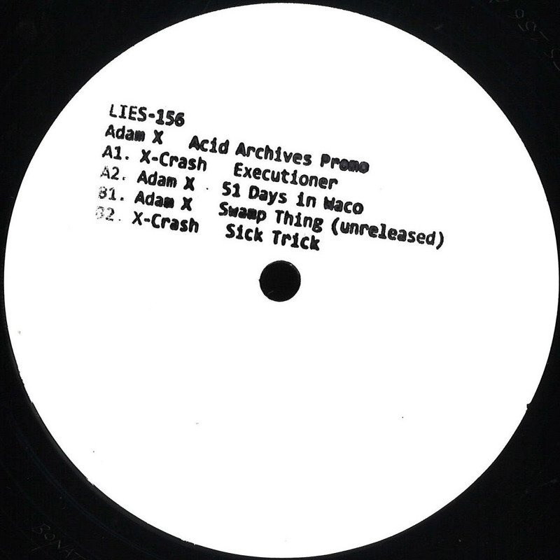 This year marks 30 years since the launch of New York's first dedicated record shop (and later label) Sonic Groove. There are numerous celebratory releases planned, but first L.I.E.S. is treating us to a fast-paced sprint through the "acid archives" of Sonic Groove co-founder Adam "X" Mitchell and his sometime production partner Jimmy Crash. The EP boasts two significant early '90s cuts from their collaborative X-Crash project: the insanely raw, fast and druggy insanity of "Executioner" and the squelchy thrust of "Sick Trick", where psychedelic acid lines buzz around another bombastic techno groove. The 12" also includes a couple of Adam X solo missives, with the previously unreleased acid techno slammer "Swamp Thing" arguably being the EP's standout track.