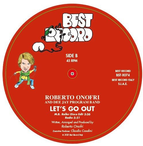 Massaroni Record (MSR) was born with the collaboration between the distributor Ermanno Massaroni and the disc jockey Roberto Onofri, who was also a radio and television presenter. "Let's Go Out" captures the essence of the very first Italo-Disco in its most genuine and melodic form where it's not easy to understand the vocal part but this gives to the song a certain ambiguity and a rare case in which the vocoder is fine. In addition to original, radio and the essential instrumental version there is a well structured and strong M.B. Roller Disco Edit by Massimo Berardi (former Harlem Hustlers) useful to give greater balance to the entire release.