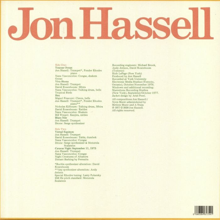Hailed as one of the 50 best ambient albums of all time by Pitchfork, Vernal Equinox was the first commercially released work by Jon Hassell, originally put out by Lovely Music in 1977. It's also the debut of a pioneering new form of music that would become known as “fourth world”: a subtle blend of field recordings, electric jazz, ambience and global music influences. Hassell’s trademark FX-soaked trumpet is carefully embellished by a studio ensemble including the master Brazilian percussionist Naná Vasconcelos and David Rosenboom on synth.