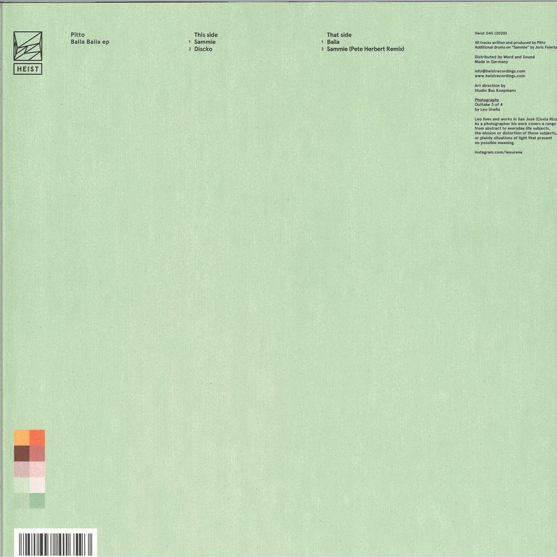 Pitto is not one to flood the scene with new music considering he’s only released two ep’s in the last three years. He takes the time to let ideas evolve and it’s clearly noticeable on last year’s EP on ‘Something Happening Somewhere’ sublabel ‘Ooshaa’, where his feel for an almost poppy hook is perfectly combined with his love for darker electronics. On the ‘Baila baila EP’ –his return to Heist after his last ep in 2018- he explores this path further. The EP is filled with live percussion, a dark and rolling acid line, chopped beats and catchy piano riffs. The three originals are accompanied by a remix courtesy of Pete Herbert that has ‘summer’ written all over it.