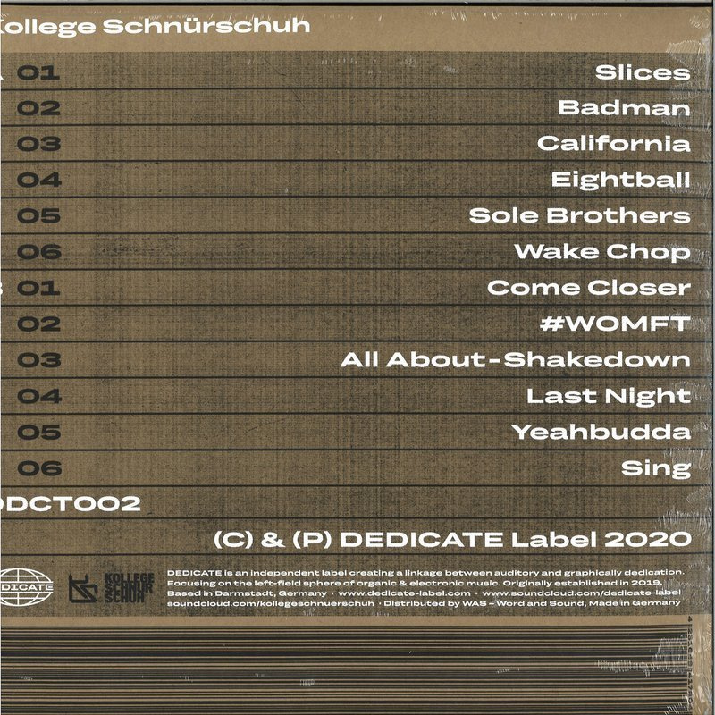 The second release of the label Dedicate is created by Kollege Schnürschuh. The producer collective, consisting of Phonk D, Clav Split, Iron and Jogging Jones, presents a cross-section of the past few years on the 12 instrumental tracks. Shoe School represents true hip hop without too much bling and flashy ice, somewhere between Old and New School.